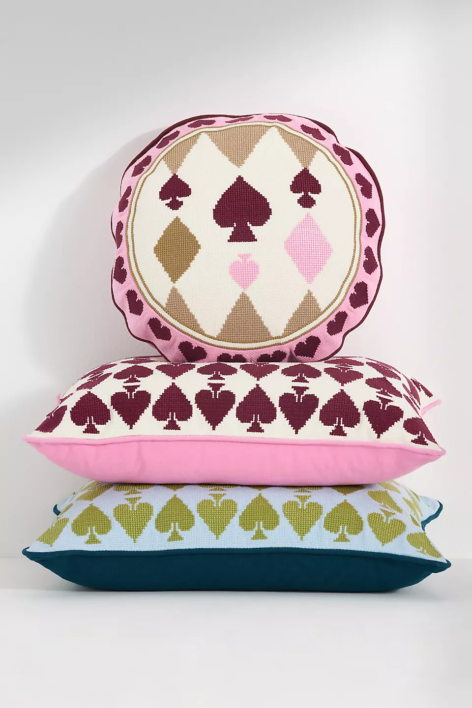 Classic playing cards get a plush, textural upgrade with these throw pillows, perfect for adding a playful touch to your living space.